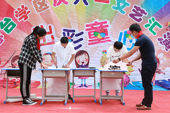 西北师大书法协会、魔术协会、笛萧社团及“爱尚微公益——爱在远山”实践项目志愿者们为小学生表演了民族舞蹈、竹笛重奏、书法展示、互动魔术等形式多样的文艺节目。美术学院青年志愿者为春台学校创作了校园文化墙。