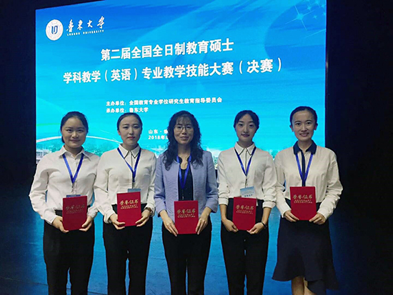 9月23日,第二届全日制教育硕士学科教学(英语)专业教学技能大赛全国总决赛举行,西北师大外国语学院2017级教育硕士学科教学(英语)研究生殷小雨、王兴娜获二等奖,甄宏伟、周芸花获三等奖,黄彩霞老师获得优秀指导教师奖。