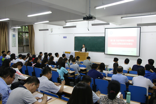 6月26日上午,中共甘肃省委党校第43期哲学社会科学教学科研骨干研修班学员来西北师大观摩学习。马克思主义学院围绕“深入学习贯彻习近平总书记在学校思想政治理论课教师座谈会上的重要讲话精神,不断推进思想政治理论课改革创新”的主题,组织开展了现场教学活动。研修班50余名学员、马克思主义学院教师共同参与活动。