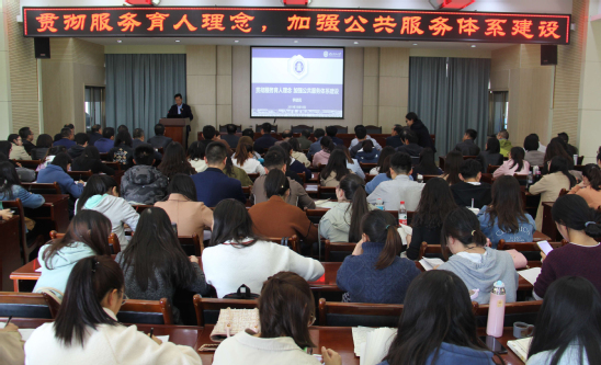 李建民围绕如何贯彻为党育人、为国育才理念,什么是高校公共服务体系,我校公共服务体系建设中存在的问题,怎样加强学校公共服务体系建设四个方面进行了详细讲解。