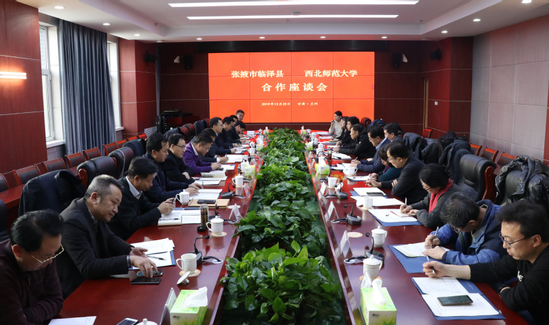 12月25日下午,张掖市临泽县委书记张学勇一行来校座谈交流合作事宜。西北师大党委书记张俊宗、副校长董晨钟及相关部门负责人参加座谈。